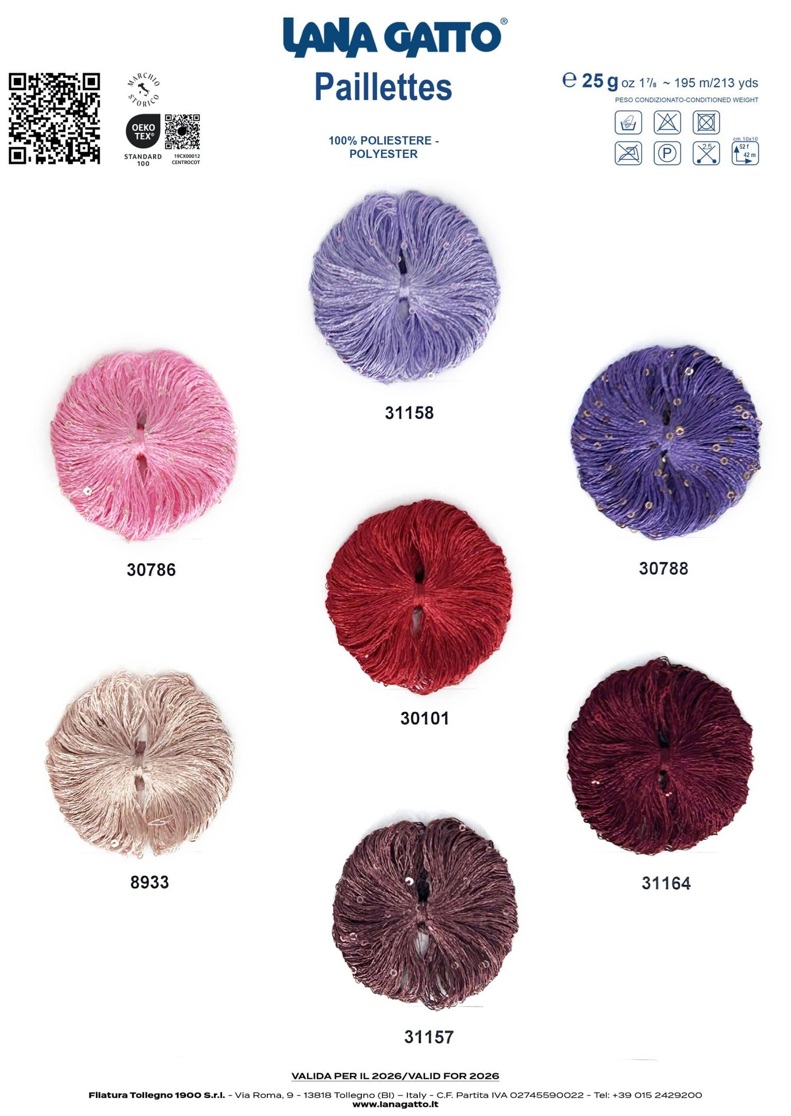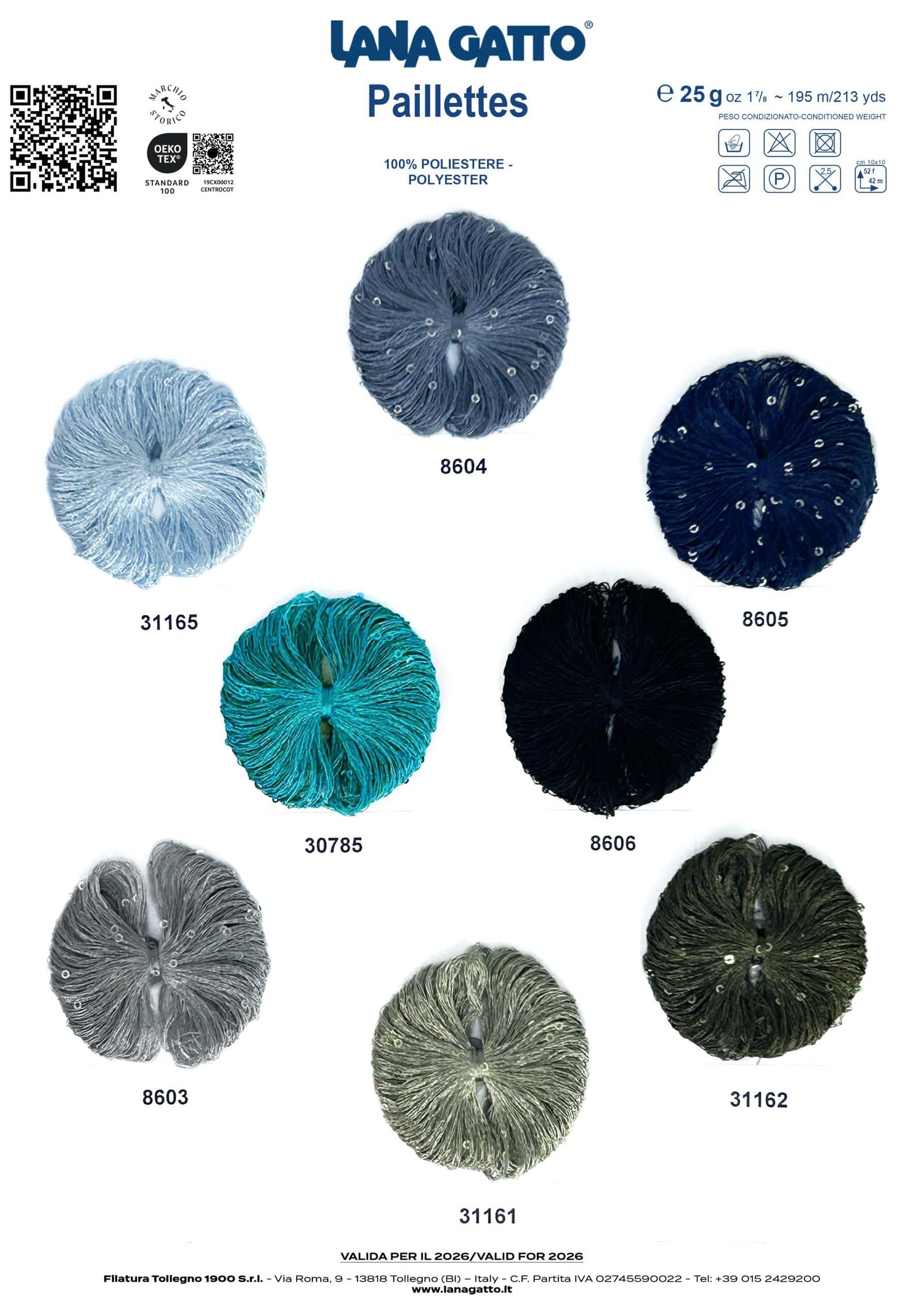 Šī dzija ir lieliski piemērota svētku apģērbiem, aksesuāriem un dekoratīviem projektiem – šallēm, džemperiem, topiem un pat vakartērpiem. Lana Gatto Paillettes bieži izmanto kombinācijā ar citām dzijām, lai piešķirtu izstrādājumiem papildu tekstūru un eleganci.