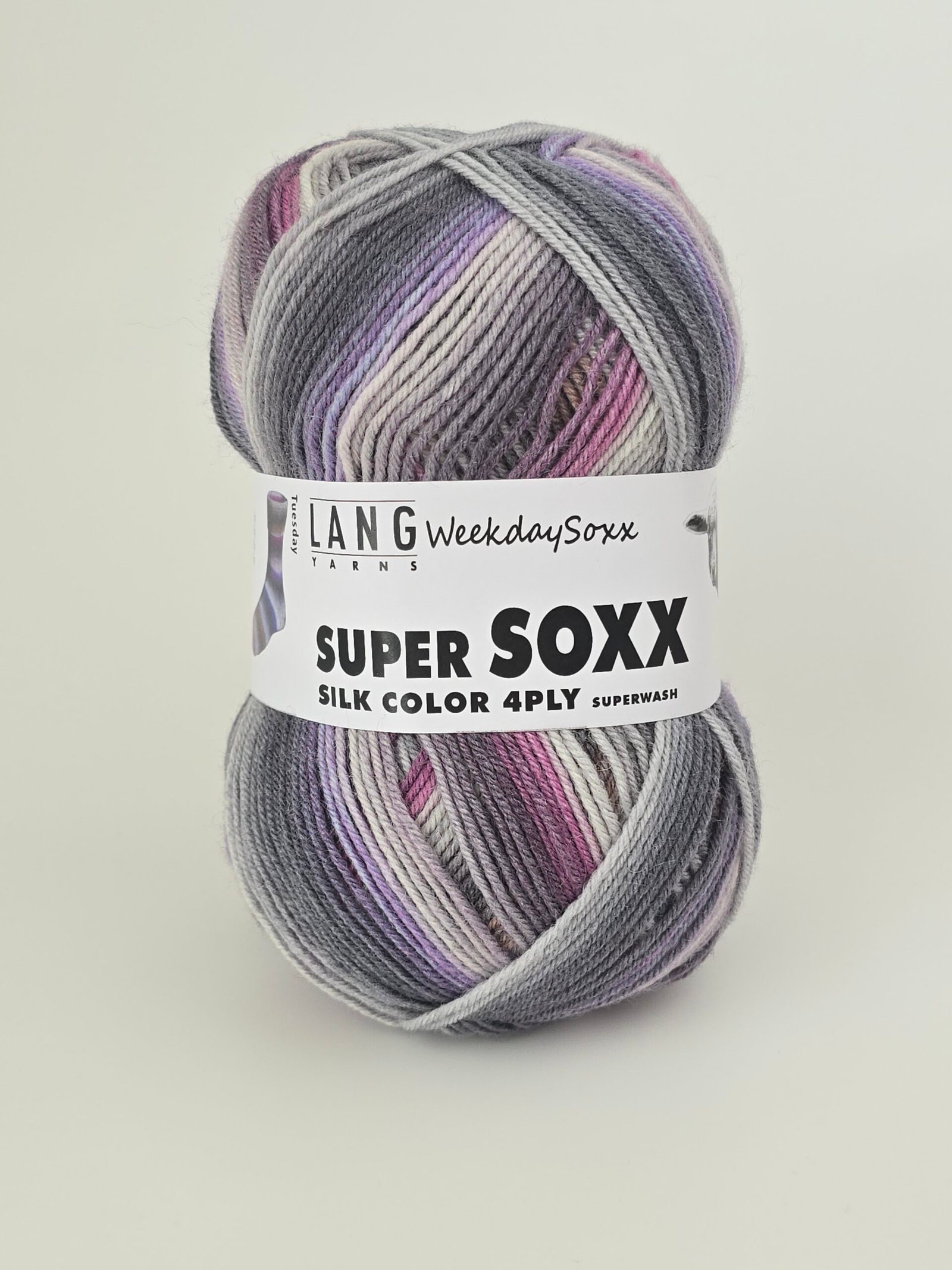 Lang Super Soxx Silk Color 4-ply zeķu dzija ir izcila izvēle gan zeķu adīšanai, gan citiem smalkiem rokdarbiem. Šī premium klases dzija apvieno augstas kvalitātes vilnu ar zīdu, nodrošinot īpašu maigumu, izturību un elegantu spīdumu.