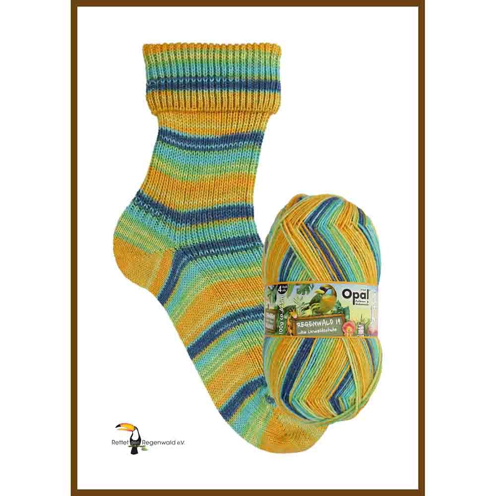 Atklājiet jaunāko Opal Regenwald 19 kolekcijas krāsu spēli – kvalitatīvu, izturīgu un koši iekrāsotu 4-diegu zeķu dziju, kas radīta gan praktiskiem, gan radošiem rokdarbiem. Tā ir lieliska izvēle zeķēm, cimdiem, šallēm un citiem adījumiem, kam nepieciešama izturība un ilgmūžība.